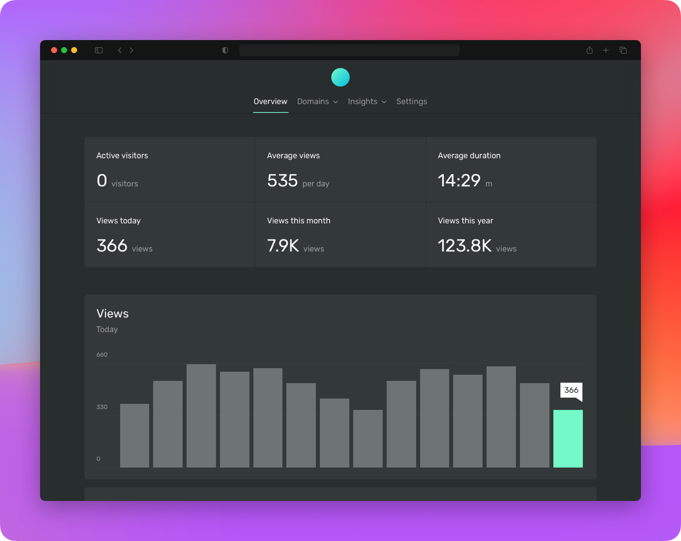 - Cookieless tracking - Glass Analytics doesn't use cookies, making it more privacy-friendly than Ackee