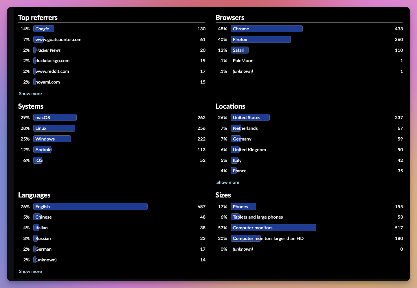 GoatCounter Screenshots